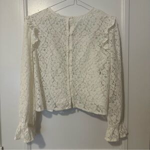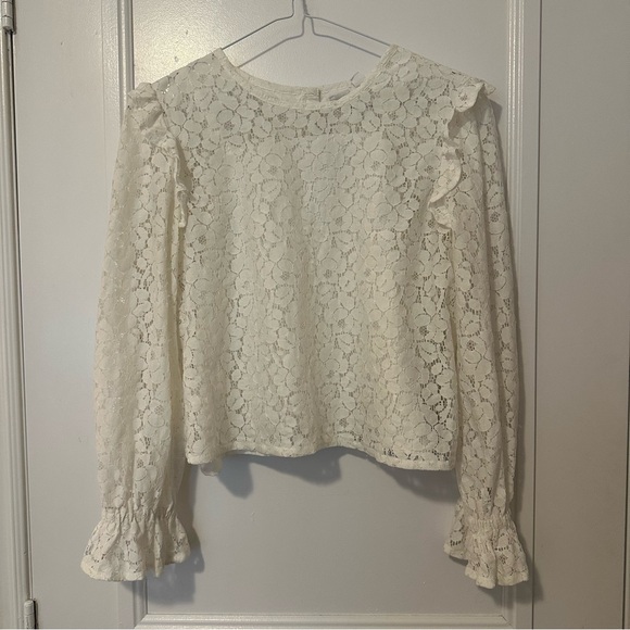 Long sleeves with ruffle detail at shoulders and elasticized cuffs.