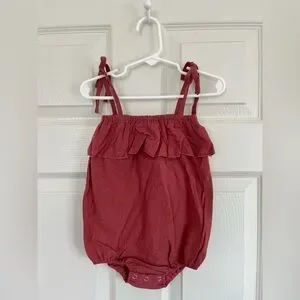 Adorable kids bubble romper with ruffled detailing. Perfect for playful days. tie Straps