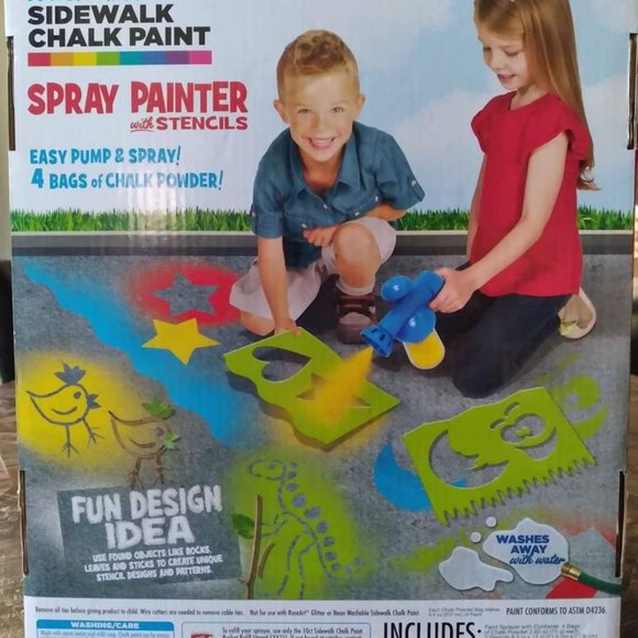 Kids Sidewalk Chalk Spray Painter With Stencils- Washable- New In Box.