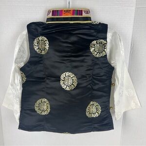 Kids, Tibetan traditional brocade top, Losar - black/white. Size: 1.