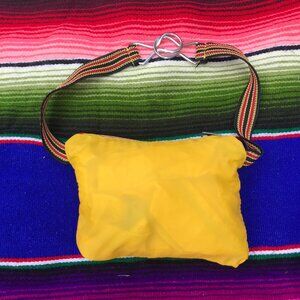 Super fun yellow packable "k-way" style windbreaker. Take it off an wear it as a fanny pack!
