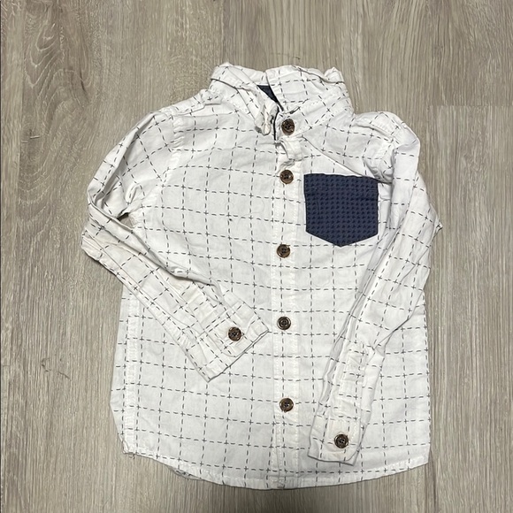 Stylish kids' shirt featuring a classic white checkered pattern with a contrasting blue pocket. Perfect for any occasion.