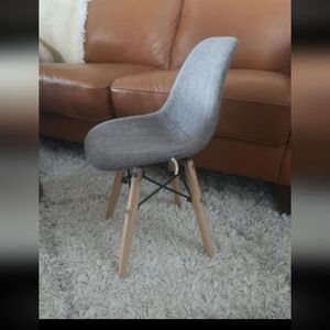 Kids modern Armless Accent Chair. Gray Upholstery with birch wood legs. New