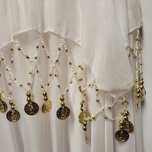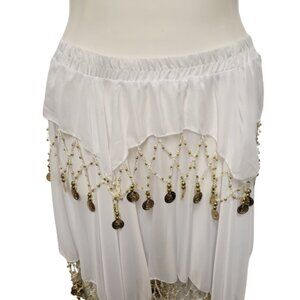 Kids or Teens Dance Skirt White Sheer Party Skirt with Gold Beads and Coins