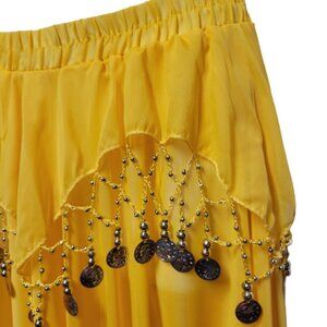 Kids or Teens Dance Skirt Yellow Sheer Party Skirt with Gold Beads and Coins