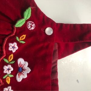 Adorable vintage red velvet dress with charming embroidery. Perfect for any occasion.. panties are slightly different colour but I thought they worked well with dress so added them