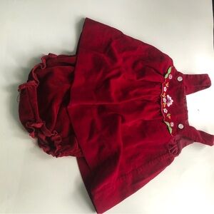 Adorable vintage red velvet dress with charming embroidery. Perfect for any occasion.. panties are slightly different colour but I thought they worked well with dress so added them