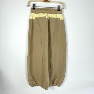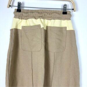 Cotton jersey mid-length skirt colorblocked in beige and yellow.