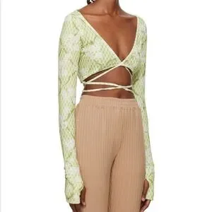 Self tie straps, thumb holes, cut out at back. bought on SSENSE