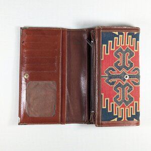 Kilim and leather wallet Aztek Mayan pattern Italy Turkish AA leather purse