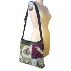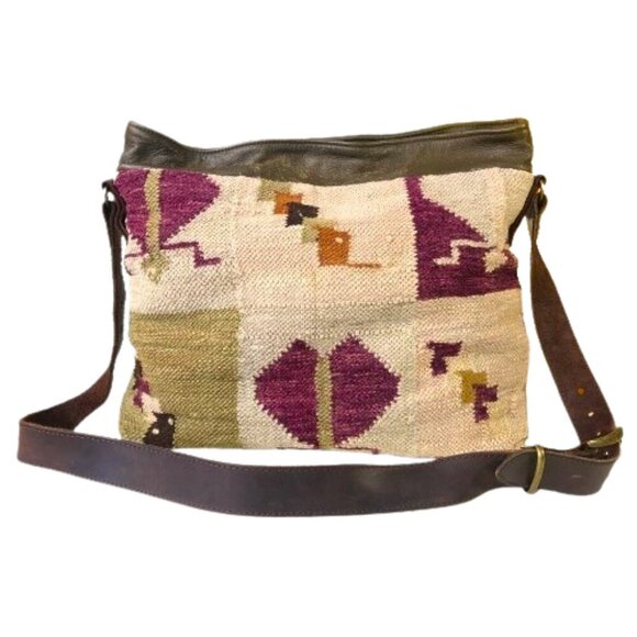 Kilim carpet or tapestry leather bag handbag purse