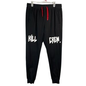 Kill Crew Unisex Joggers Black Thigh Graphics Drawstring Pockets Gym Workout L