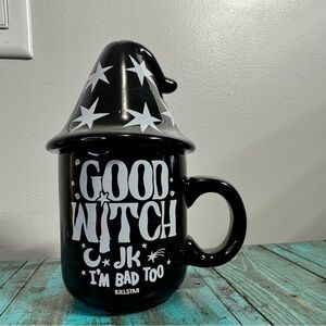 Manifest yourself the perfect brew in our ‘Good witch’ mug. Crafted in black ceramic with a large contrast print. A large size mug and high gloss finish. And it has an adorable little lid!