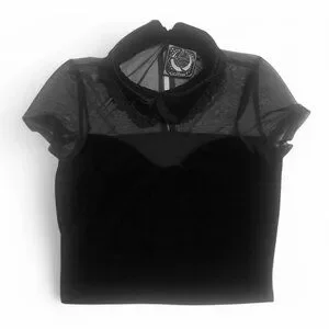 •old school KILLSTAR RAE black velvet mesh peter pan collar dark academia plain basic minimalist cropped crop top tee t-shirt