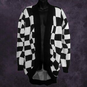 •trippy checkered KILLSTAR YOUR MOVE cocoon oversized black white vaporwave grunge warped knit heavy cardigan ⚄⊹ ࣪ ˖