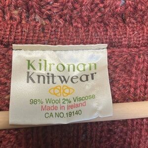 Kilronan Knitwear Wool Made in Ireland Cable Knit Sweater Cardigan in Burgundy