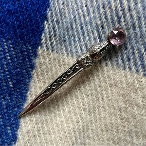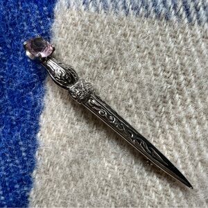 Kilt Pin Dagger Brooch Celtic Design Dirk Sgian Dubh Brooch Pink Stone Cut Glass