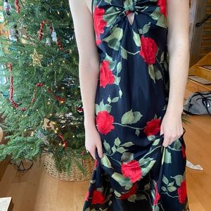 Kim Rogers Intimates Black & Red Vintage Roses Maxi Slip Dress – Size Medium
