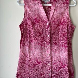 Kim Rogers Pink Paisley Sleeveless Blouse women’s Size Small Ombré 100% cotton