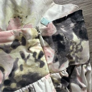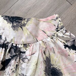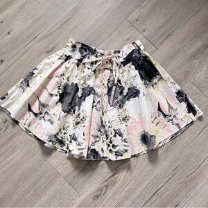 Adorable flared mini skirt from Urban Outfitters. Lovely pastel springy colours in a floral print. Zip up closure, cute lace up detail in the back.