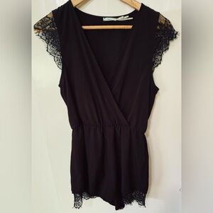 Kimchi Blue| Silky Black Shorts Romper with Lace Details Sz M