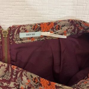 Perfect fall palette, with a metallic twist! This Kimchi Blue skirt will fit perfectly into your professional or date night wardrobe as it can be dressed up or down.