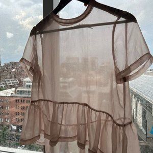 Kimchi Blue sheer taupe ruffle short sleeve blouse