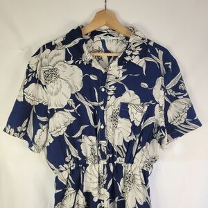 Kimchi Blue short sleeve classy white and navy blue floral romper in EUC Like New. Lined shorts. There are small belt loops if you would like to add a slim waist belt but no belt is included.