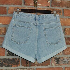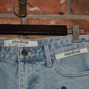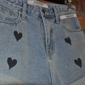 Kimhekim My Uniform, High Rise, Jeans Heart Stamped Denim Shorts M Mint Cond.