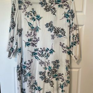 Size L. Lightweight and soft. 32” long from collar to hem. Has bust darts for improved fit in torso. Excellent condition.