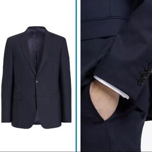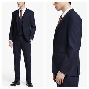In excellent preowned condition, practically as new. gorgeous modern fit Kin by John Lewis Bengaline wool slim fit suit jacket in dark navy.