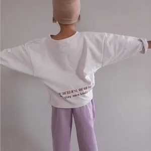 Oversized pullover with coordinates print in the back from Canadian brand Kindly.
