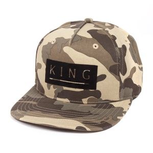 Limited edition King Apparel snapback cap in camo cotton twill blend. Designed with the same low profile block, shape and construction as Starter snapbacks. Adjustable to fit most head sizes and made in the classic pinch panel construction with no compromise on quality. London's finest contemporary streetwear since 2003.
