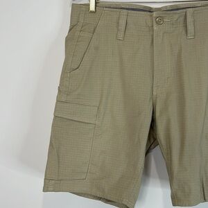 Men’s olive green King Gee “Workcool Pro Stretch Work Shorts K17006)”. Velcro Cargo pockets.