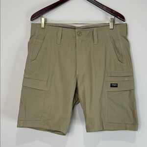 Men’s olive green King Gee “Workcool Pro Stretch Work Shorts K17006)”. Velcro Cargo pockets.