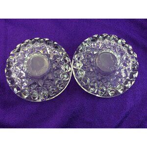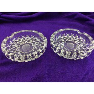 A few almost imperceptible scratches inside both pieces. There are a few slightly rough edges on the bottom of George's ashtray. I can't see them, but I can feel them on the pad of my finger. There is a smaller-than-a-pinhead fleabite to the inner rim of Elizabeth's ashtray. There are 3 bubbles in the glass of George's ashtray, and 2 in Elizabeth's. With the ornate style of the glass, these flaws are almost unnoticeable.