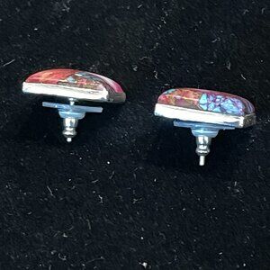 These beautiful cabochon earrings are called Kingman Turquoise Purple Dahlia.