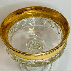 King's Crown Gold Rim Compote Clear Glass Dish Pedestal