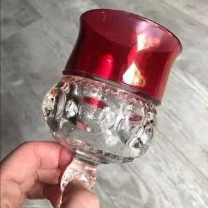 Set of 6 Beautiful kings crown ruby flash larger size goblets. Just under 6 inches tall.