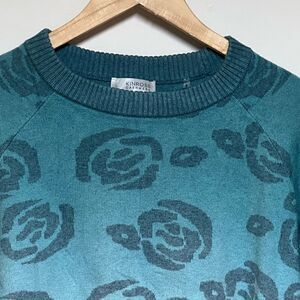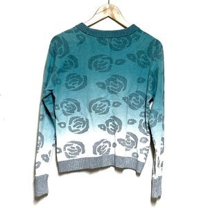 Kinross Cashmere Dip Dyed Blue Rose Print Crew neck Sweater Womens Sz M
