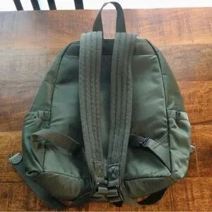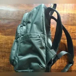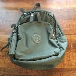 Kipling backpack made of nylon in a rich green colour. Large main compartment, small drop pocket on top of bag and medium size front pocket. All sections have zip closure, with the largest compartment double zipped. Two slip pockets on each side of backpack to fit water bottle, umbrella, sanitizer, tissues, sunglasses, snacks… any small items you need quick access to. Main compartment has a zip pocket (concealed behind drop pocket). Front compartment has an interior slip pocket and two pen slots. A grab handle on top for hand carry and padded straps for wearing comfortably on your back. Includes a cute metal monkey charm with a tassel, that is removable. Excellent used condition. Clean interior and exterior. No tears or damage. Great unisex bag for travel, work, excursions etc. Holds everything you need in 13 L capacity. Material is lightweight, washable and durable.