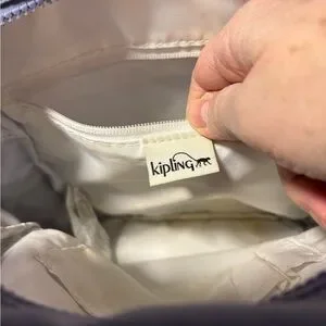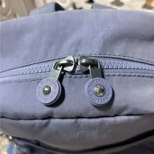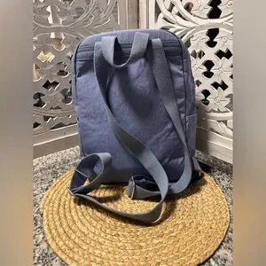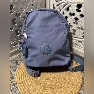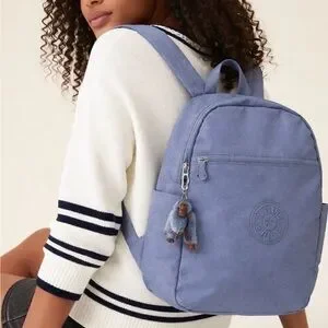 Chic Kipling backpack in dusty blue. Features a roomy interior and comfy straps. Ideal for daily adventures.