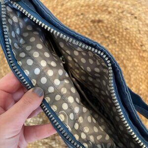 Used for a couple of years but well kept. Beautiful blue with light grey polka dots liner. Lots of pockets and key holder.