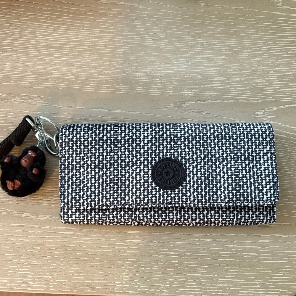Chic Kipling accessory with a striking black and white design. Perfect for everyday use.