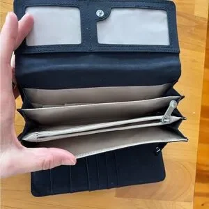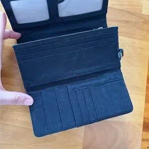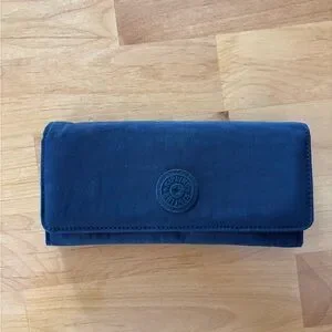 Stylish navy blue wallet by Kipling. Features a sleek design with a logo detail.