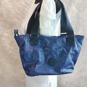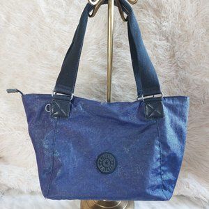Kipling Women's Blue Cotton Canvas Small Zip Top Tote