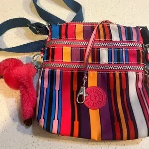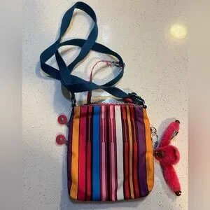 Small colourful Kipling cross purse with multiple pockets and key hook.