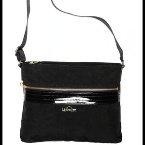 Wear on zipper pulls and logo, ink mark inside bag, navy blue