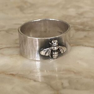 In excellent preowned condition gorgeous handcrafted Honey Bee wide band ring in sterling silver