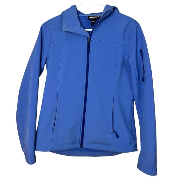 Kirkland Signature Blue Soft Shell Zip Up Hooded Lightweight Jacket women Size M